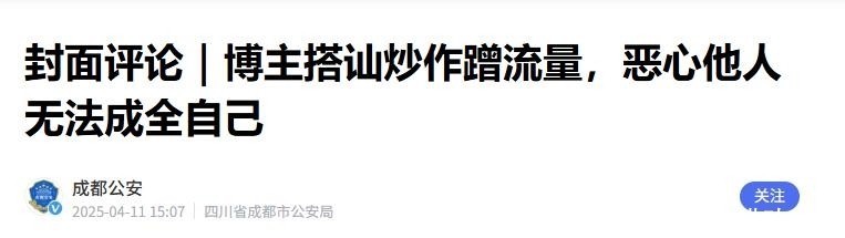 成都公安 2025-04-11 封面评论|博主搭讪炒作蹭流量,恶心他人无法成全自己